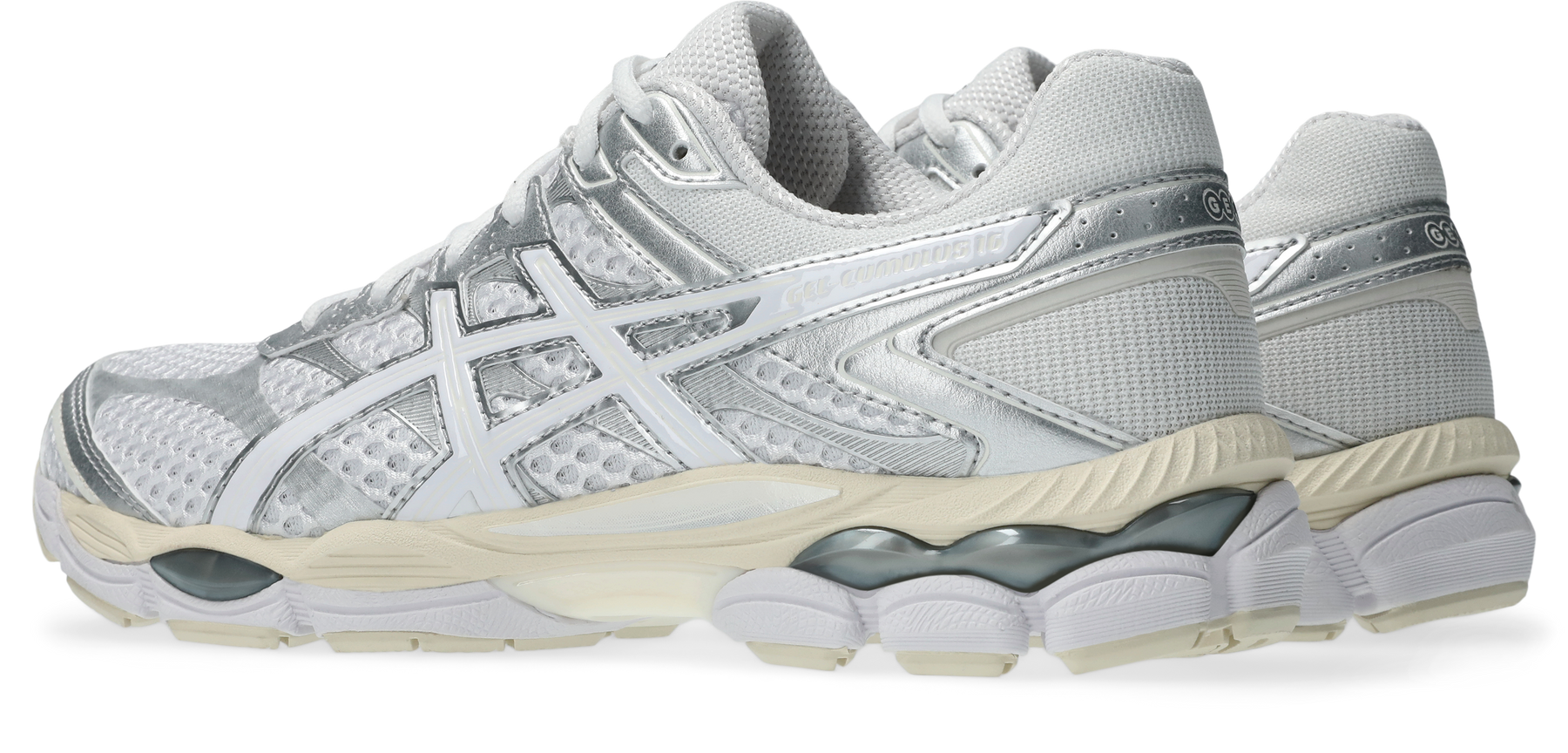 The tooling contrasts the upper's retro influences by using the GEL-CUMULUS® 16 shoe's tooling system. Through a combination of lightweight foams and GEL® technology inserts, this midsole formation helps create advanced underfoot comfort.