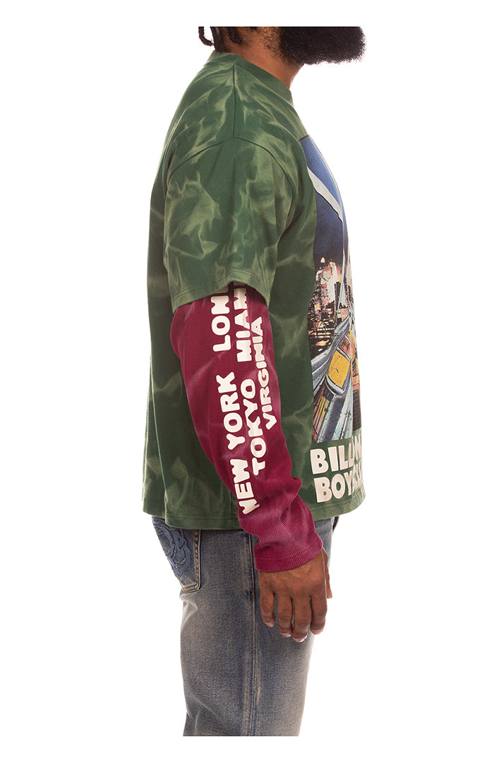 SS KNIT JERSEY CREW NECK SHIRT WITH FRONT AND BACK PRINTS