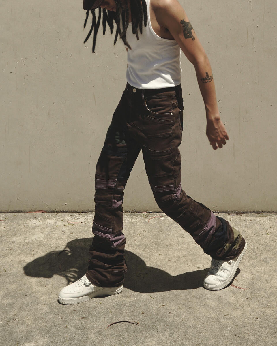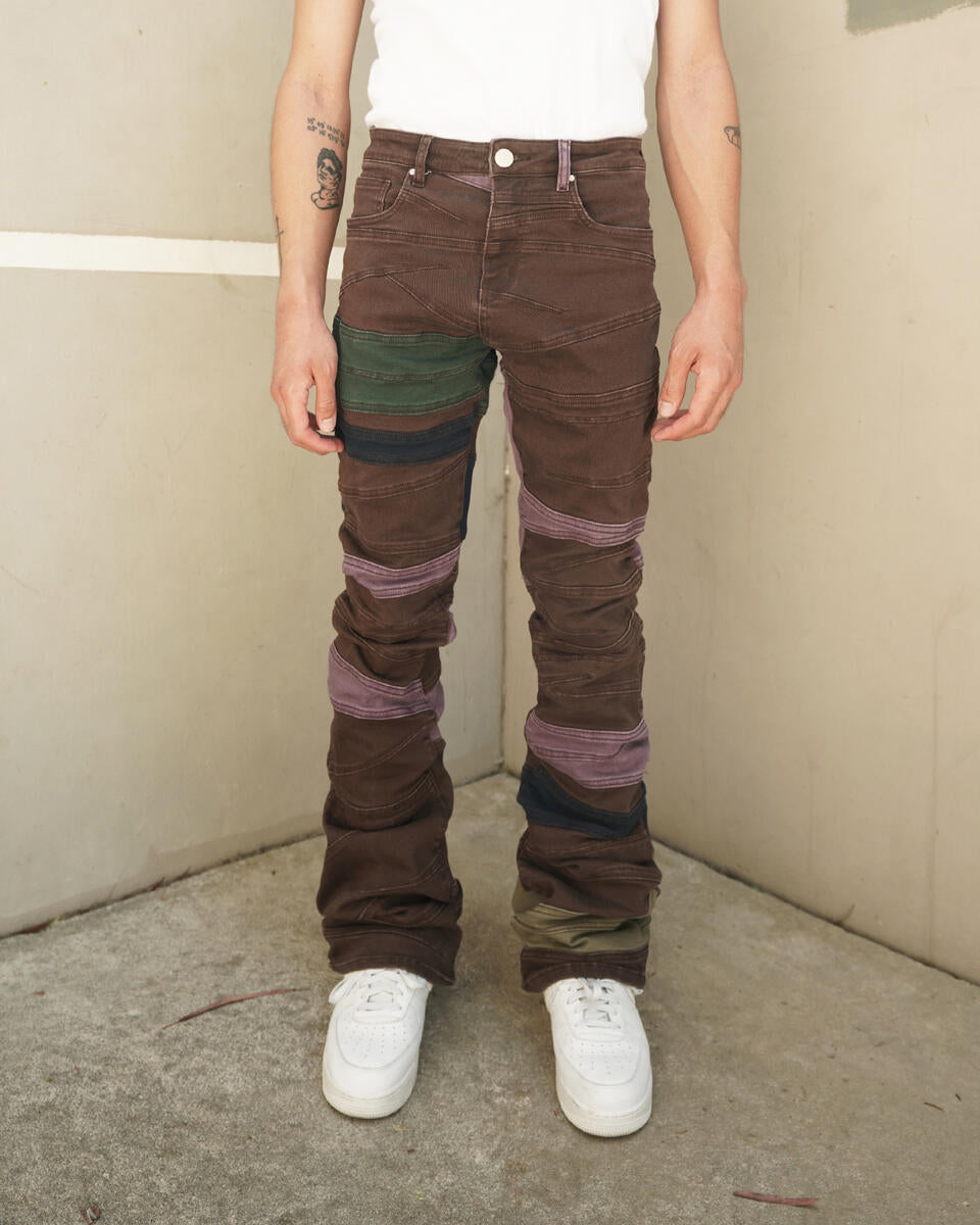Lifted Anchors "Borg" Color Panel Stacked Flare Denim