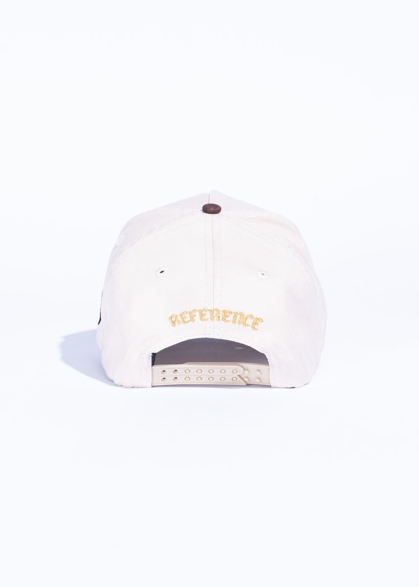 - Fully adjustable structured snapback - 3D front embroidery - Bean side embroidery - Infinity snake logo side embroidery - Gold Thread "REFERENCE" embroidery arched over rear of hat - Seamless front panel with full buckram - 6 row stitching on visor - Custom branded interior taping - Custom "R'" Double Row snap for a secure fit - Comfortable cotton canvas material