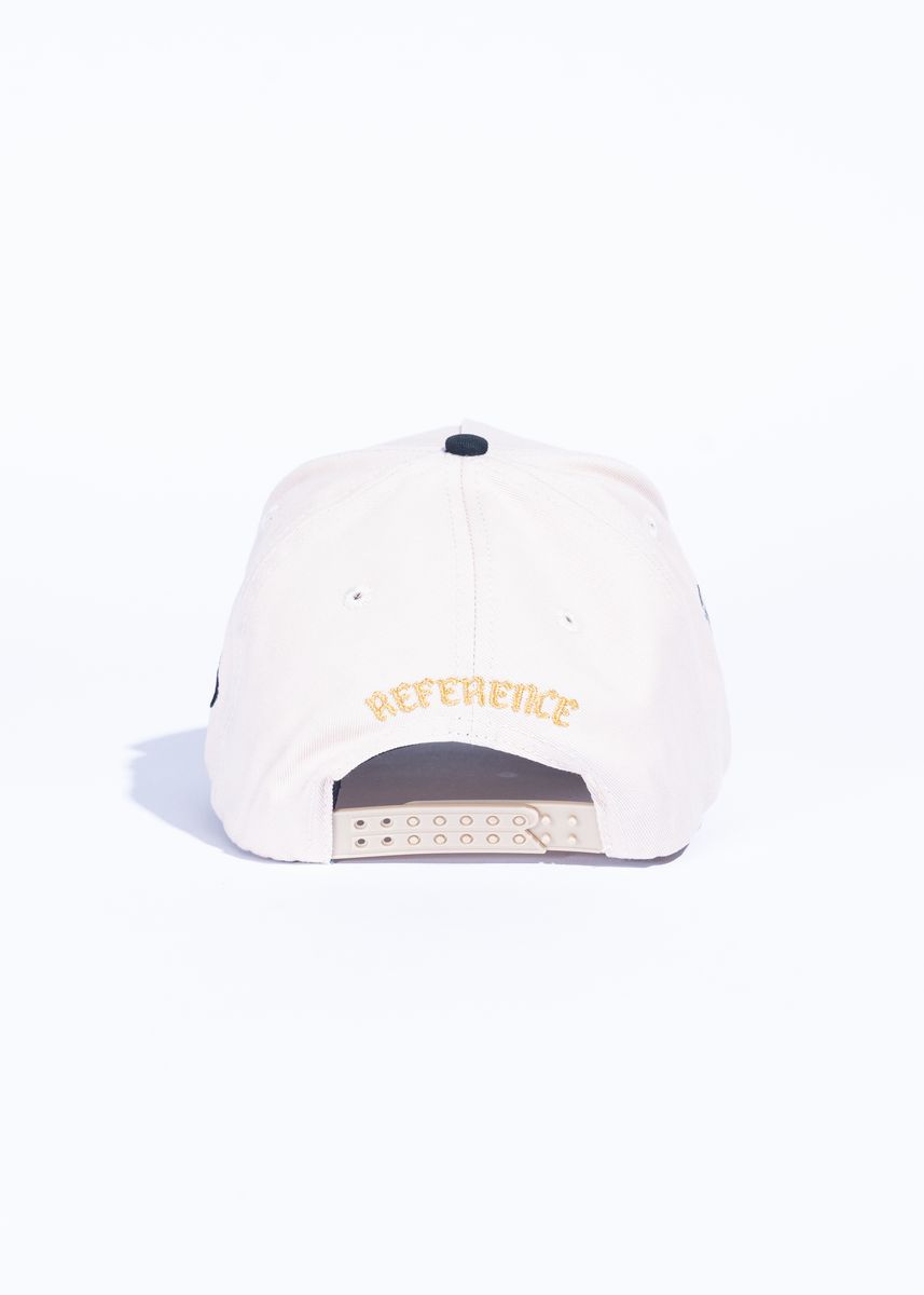 - Fully adjustable structured snapback - 3D front screen print - Infinity snake logo side embroidery - Gold Thread "REFERENCE" embroidery arched over rear of hat - Seamless front panel with full buckram - Custom branded interior taping - Custom "R'" Double Row snap for a secure fit - Comfortable cotton canvas material
