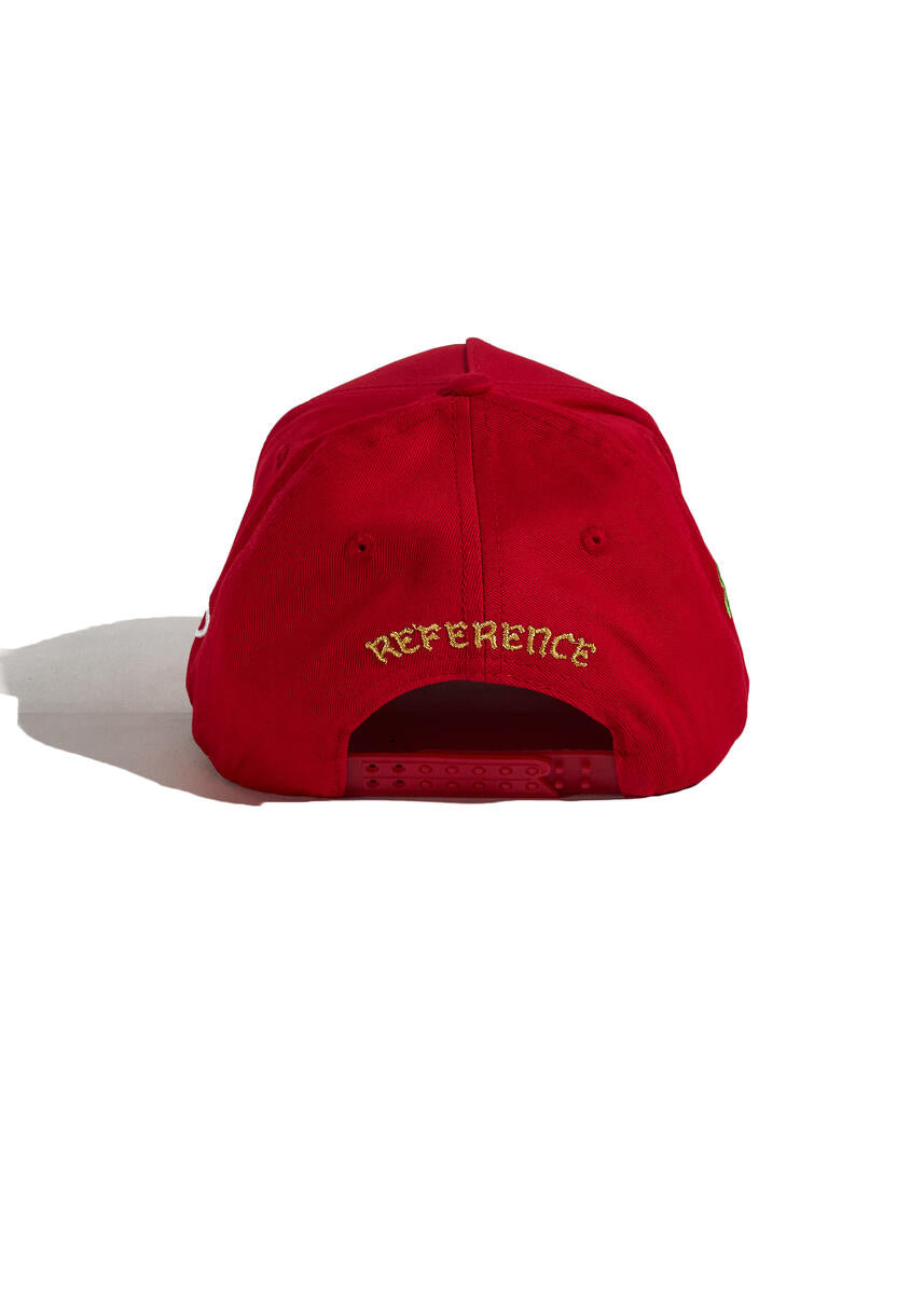 - Fully adjustable structured snapback - 3D front embroidery - Palm Tree side embroidery - Infinity snake logo side embroidery - Gold Thread "REFERENCE" embroidery arched over rear of hat - Seamless front panel with full buckram - 6 row stitching on visor - Custom branded interior taping - Grey underbrim - Custom "R'" Double Row snap for a secure fit - Comfortable cotton canvas material
